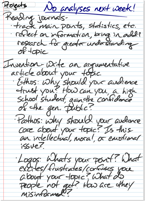 Read More......Continue reading over the sources for your support, refute, or qualify essay [click to download] this weekend. We will work on your thesis statements on Monday, your support on Wednesday, and write the final drafts on Friday. Normal article analyses will be due Tuesday and Thursday. (Holy organization, Batman! A week planned in advance!) Have a great weekend, enjoy the extra hour.